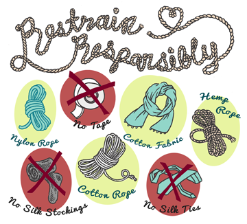 If you have some rope lying around you may also be tempted to use that. But again, check your material type before you go tying people up. Hemp and nylon rope are both good options, as they won’t constrict and they will likely be more comfortable on the skin. If you don’t know what the rope you found in the garage is made of? Don’t use it.